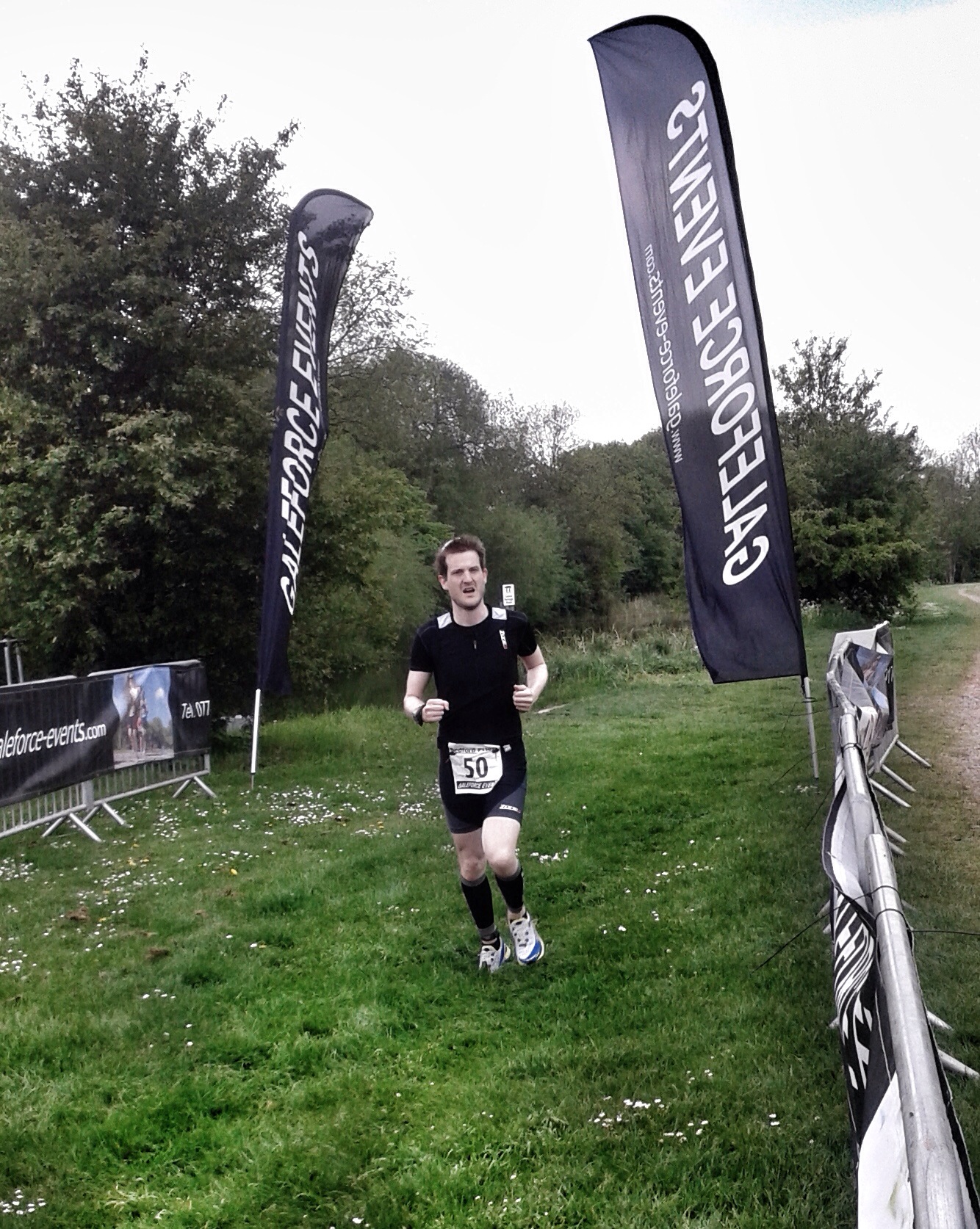 Back to the lake for the last time, collected my last wristband (whoop!) and could see the finish across the other side. The noise had ramped up significantly from the last time I ran around the lake, and the sound of finishers followed me all the way around. Hearing that pumped me up, I ran all the way up the river side of the lake, almost as far as the last feed station at the top of the lake. At this point I ran past Adrian without really noticing and he shouted as I ran past. We walked together to the feed station and discussed the day. I don’t think his day was going quite to plan, but I can only imagine the time he’d have finished in if he hadn’t been forced to walk most of the marathon – pretty impressive swimming and biking Mr Turner.