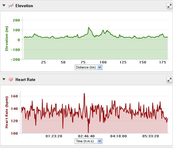 I was always prepared for a long day on the bike, my training suggested that on a very good day i could average around 27kph for 5-6 hours. The honest truth is that i hadn’t done as many full distance training sessions as I’d like. The Fink plan was all based around time, and although towards the 25-27 week mark he’d scheduled updwards of 5 hours on the bike, i’d only done that once because I had other things to get to, or because driving rain and two punctures forced me to cry off half way. So anyway, excuses out of the way I’ll continue. outlaw_ride_map Having left T2, we did a single loop around the rowing lake before heading out onto the first of two southern loops (which you can see on the map above – links through to my Garmin Connect page for full details of the ride). Heading off round the rowing lake made me aware of two things; the first, how quickly I’d made it out of the lake in the grand scheme of things. Fair enough it wasn’t quick, i was a long way back, but there were still a considerable number of people swimming, and a couple that hadn’t yet made it to half way. I both pitied and envied them in equal measure – it was already pretty warm outside. Secondly, I was amazed by how fresh I felt and how quickly I was rounding the lake. Almost immediately I started to worry that I was going too fast and that I wouldn’t be able to sustain the pace, with an inevitable crash to follow a couple of hours later. 20x30-AUTF1342But, a quick look at my HR told me that I was well within my Z2 range and my legs felt great so I decided to make hay while the sun shone (and it was seriously shining both physically and metaphorically). Lap of the lake done and it was out of the NWSC and onto the main roads towards the southern loop.  Immediately it was clear that the route was brilliantly sign posted and marshalled and, even in some of the out of town areas, very well supported by the locals. Most of the first section was on open roads which were closed in one direction for traffic, or had a single lane coned off for our use.