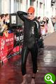Coming into transition meant negotiating the large number of crazies who’d dismounted their bikes prior to the short sharp uphill into the Excel centre (200m or so prior to the dismount line inside the centre). Once I’d reached the line myself without taking anyone out (and having already removed my feet from my shoes), I jumped off the bike and ran back through to my place in transition (cheered on by my personal cheer squad – thanks Nic!) dumped my bike, took off my helmet, threw on my trainers and a cap and “ran” out. Now I’ll admit to being a little out of practice with regards to the run – again I haven’t run any distance for about 8 weeks so my aim was to complete the run, at a nice pace and if I managed to do that without any pain at the end of the day then that would be a bonus! The great thing about the run course was the accessibility for the spectators – they were everywhere and willing to cheer on anyone and everyone – added to the staff at the drinks stations and the helpful and encouraging marshals created an amazing atmosphere. I set off at a slow but comfortable pace – took a drink at every Gatorade station and had the girls at the water stations (who were perhaps overly willing) throw the water at me, I also ran through the very welcome water sprays – it was still quite hot and humid outside. I paced myself round in 27:56 which is a full 8 minutes slower than I know I can do it – serious room for improvement but considering my build-up, to be expected.